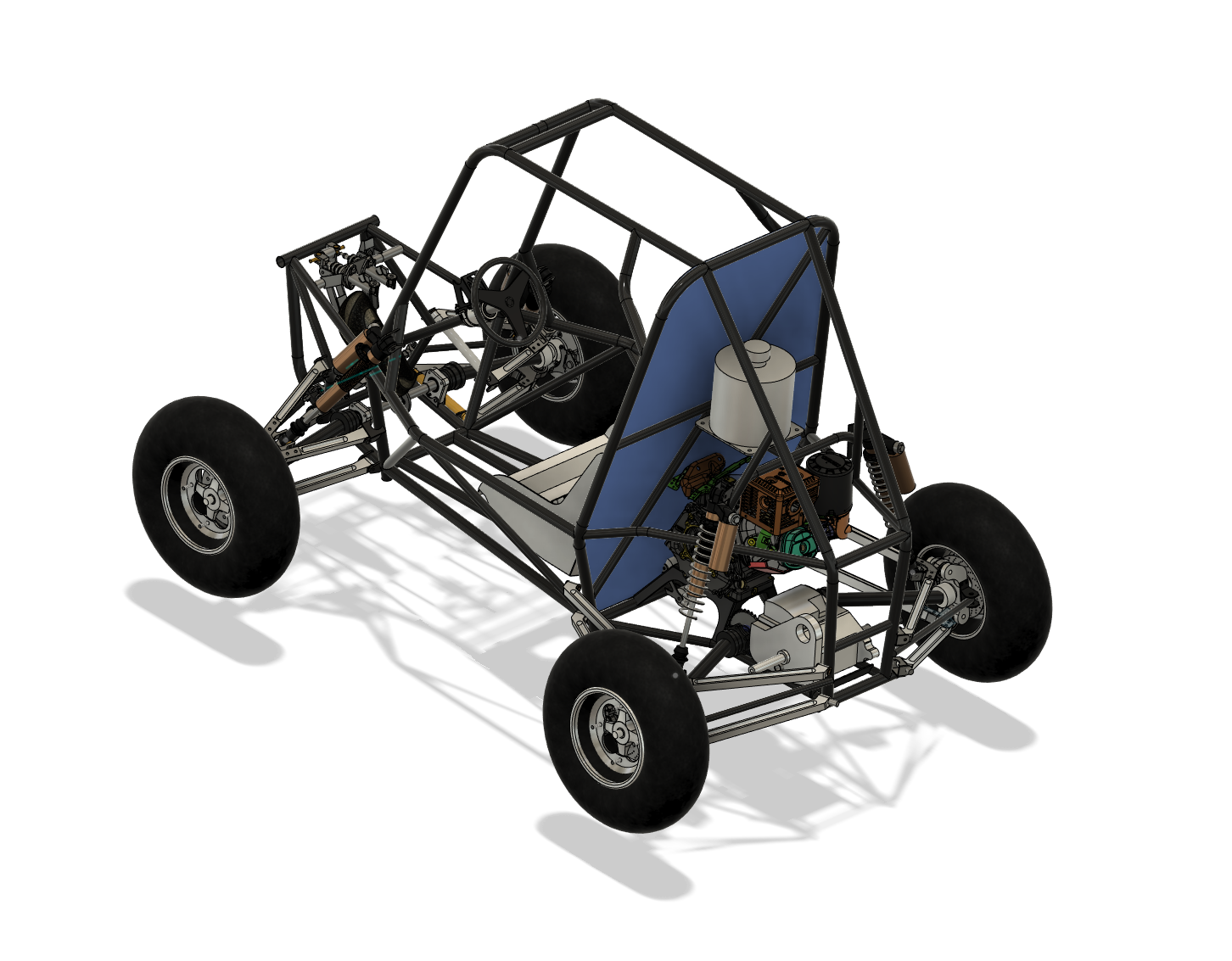 For the 2023 Baja SAE season at Virginia Motorsports (University of Virginia), I co-developed the spaceframe design for the vehicle with my co-captain, Bryan Murphy. The design needed to be strong enough to withstand shock, impact, and torsion of the vehicle over jumps and rocks, but not heavy to the point of substantially impacting the performance of the car. This was designed and tested in Autodesk Fusion 360, then manufactured by the team from 3140 chromoly steel tubing.